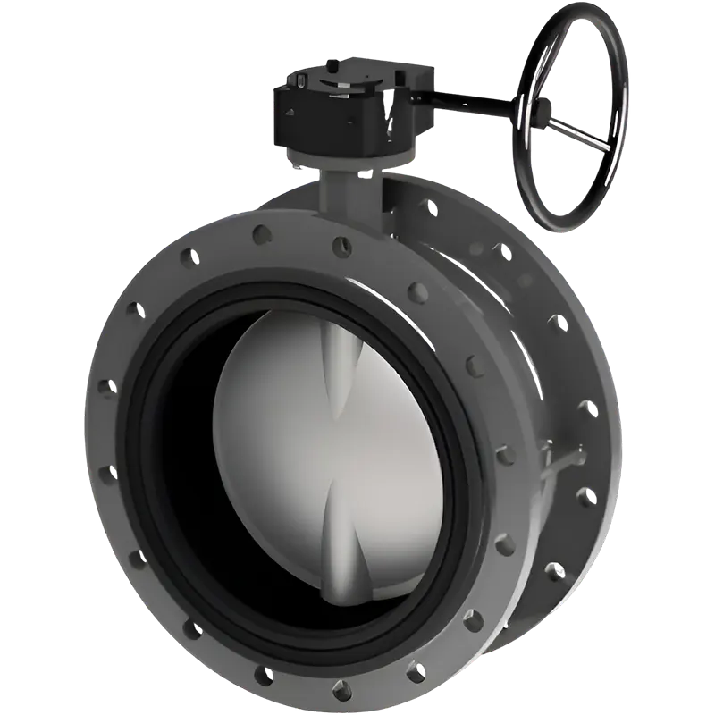Затвор состоит из корпуса, диска и седлового уплотнения. При повороте вала диск, расположенный внутри корпуса, вращается, перекрывая или открывая проход для рабочей среды. В положении “полностью открыто” диск располагается параллельно потоку, минимизируя сопротивление. В положении “полностью закрыто” диск перпендикулярен потоку, плотно прижимаясь к интегрированному седловому уплотнению, обеспечивая герметичное перекрытие.