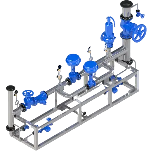 Рабочая среда поступает в установку, где сначала проходит через редукционный клапан, который снижает давление до заданного уровня. Затем поток направляется в теплообменник (охладитель), где происходит отвод избыточного тепла, снижая температуру до требуемого значения. Регулирование обоих параметров осуществляется автоматически, зачастую с использованием обратной связи от датчиков давления и температуры.